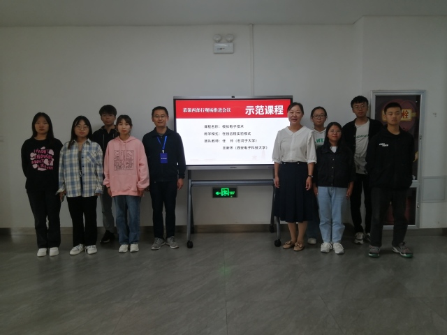 会上共有5门示范课进行展示汇报,万象城awc官网登录入口电气系任玲老师主讲的《模拟电子技术》入选展示示范课。该课程依托西电的国家在线课程,通过云服务访问西电AI+远程实验真实设备,理论与实时实验相结合开展教学。学生在课上通过西电的远程实验平台进行电路连接、观察波形、分析实验数据,并开展研讨、思辨和拓展。