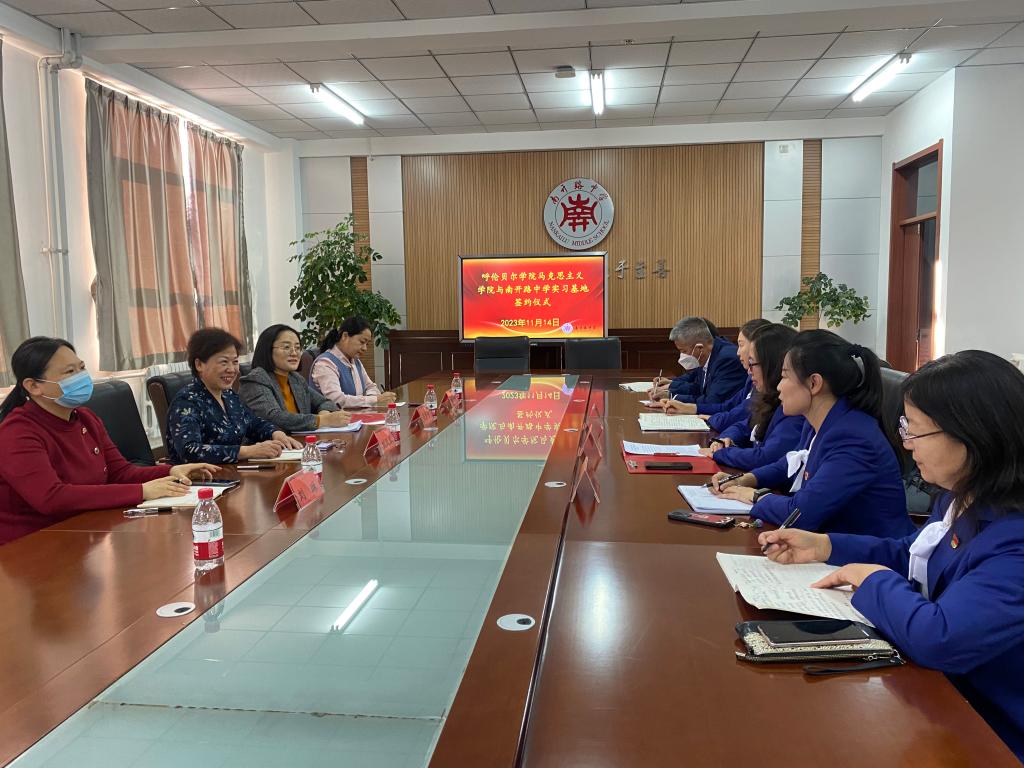 11月14日上午,米兰milan官网与海拉尔南开路中学签订了共建教育教学实践基地协议书。学院党总支书记刘凤琴,院长吴秀芳,副书记刘琳、副院长明兰和南开路中学校级领导班子及思政课教师代表参加了此次仪式。