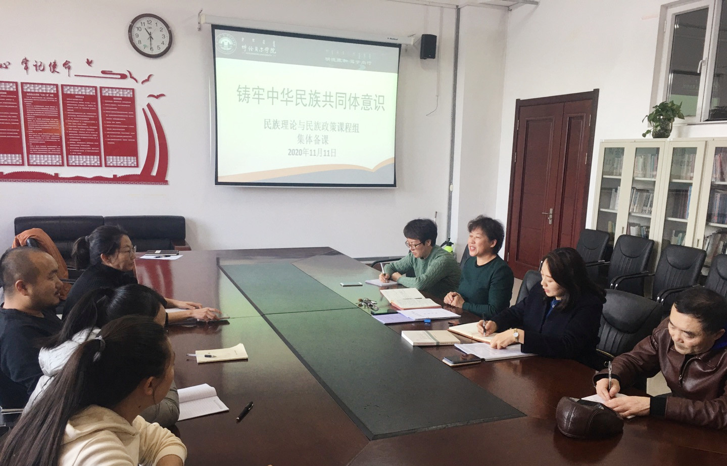 为推动中华民族共同体教育进课堂,引领各族学子深刻认识并领会中华民族共同体的形成和发展,不断铸牢中华民族共同体意识,2020年11月11日下午,米兰milan官网民族理论与民族政策课程组在崇文楼B123组织召开了以“铸牢中华民族共同意识”为主题集体备课会。会议由刘凤琴书记主持,李俏副院长及“民族理论与民族政策”课程组全体教师参加。