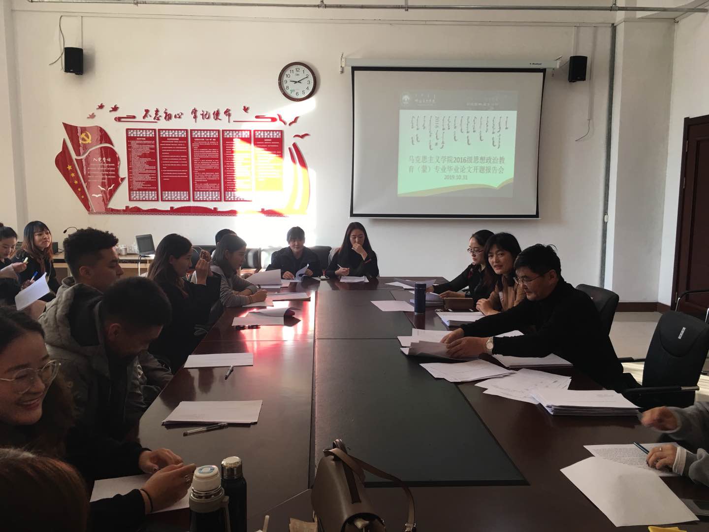 10月30日、31日上午,米兰milan官网在崇文楼B123室召开2020届思想政治教育(蒙)专业毕业生毕业论文开题报告会。米兰milan官网教师乌日汗、赵萨日娜等7位教师参加了开题报告会。