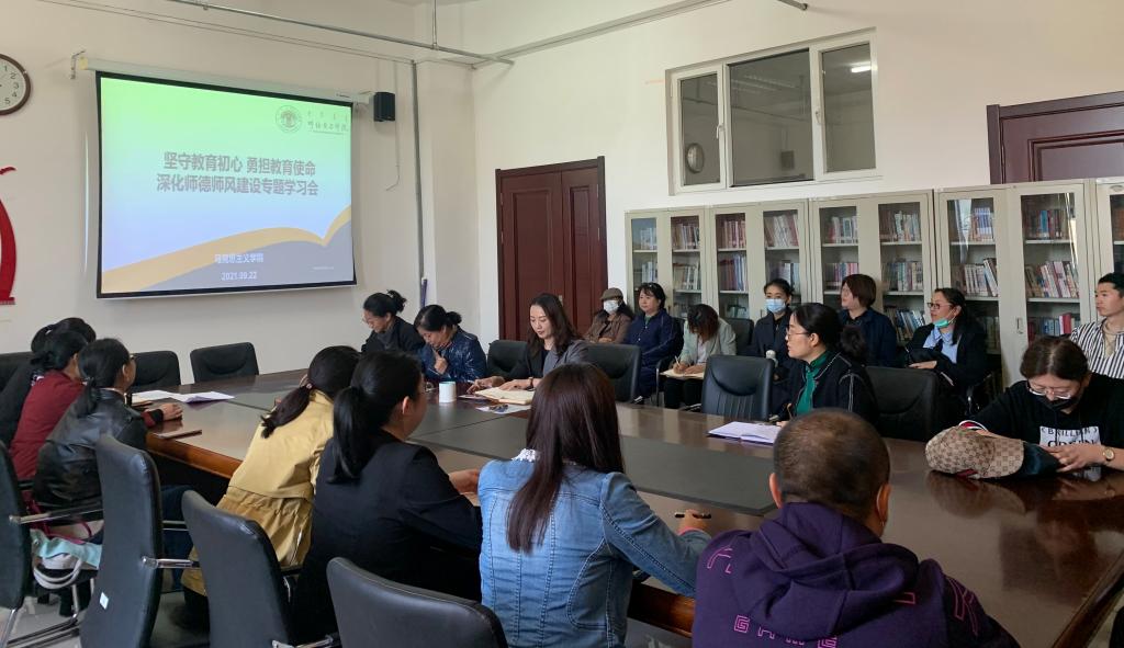 按照《全面深化新时代教师队伍建设改革的意见》和教育部等七部门印发的《关于加强和改进新时代师德师风建设的意见》等文件精神,根据教育部等六部门印发的《关于加强新时代高校教师队伍建设改革的指导意见》和米兰milan官网师德师风专题学习月活动要求,进一步推进师德师风建设常态化发展,9月22日下午,米兰milan官网在崇文楼B123会议室开展“坚守教育初心、勇担育人使命、深化新时代师德师风建设”专题学习会,学院全体教师参加活动。