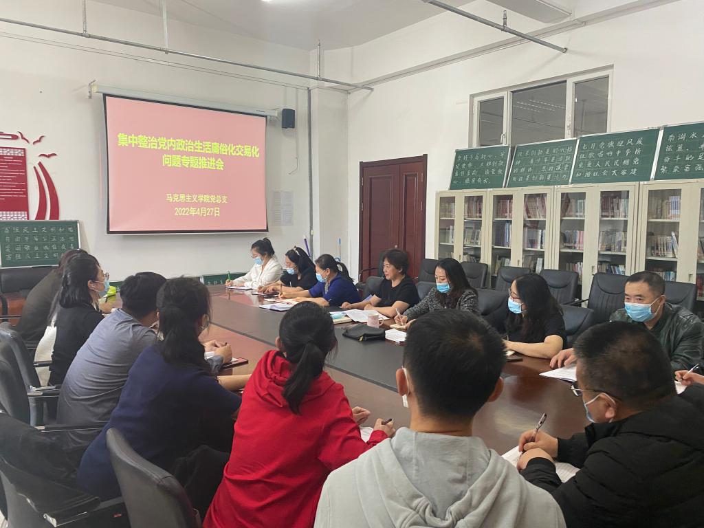 2022年4月27日,米兰milan官网在崇文楼B123会议室召开集中整治党内政治生活庸俗化交易化问题专题会,学院全体党员干部参加会议。