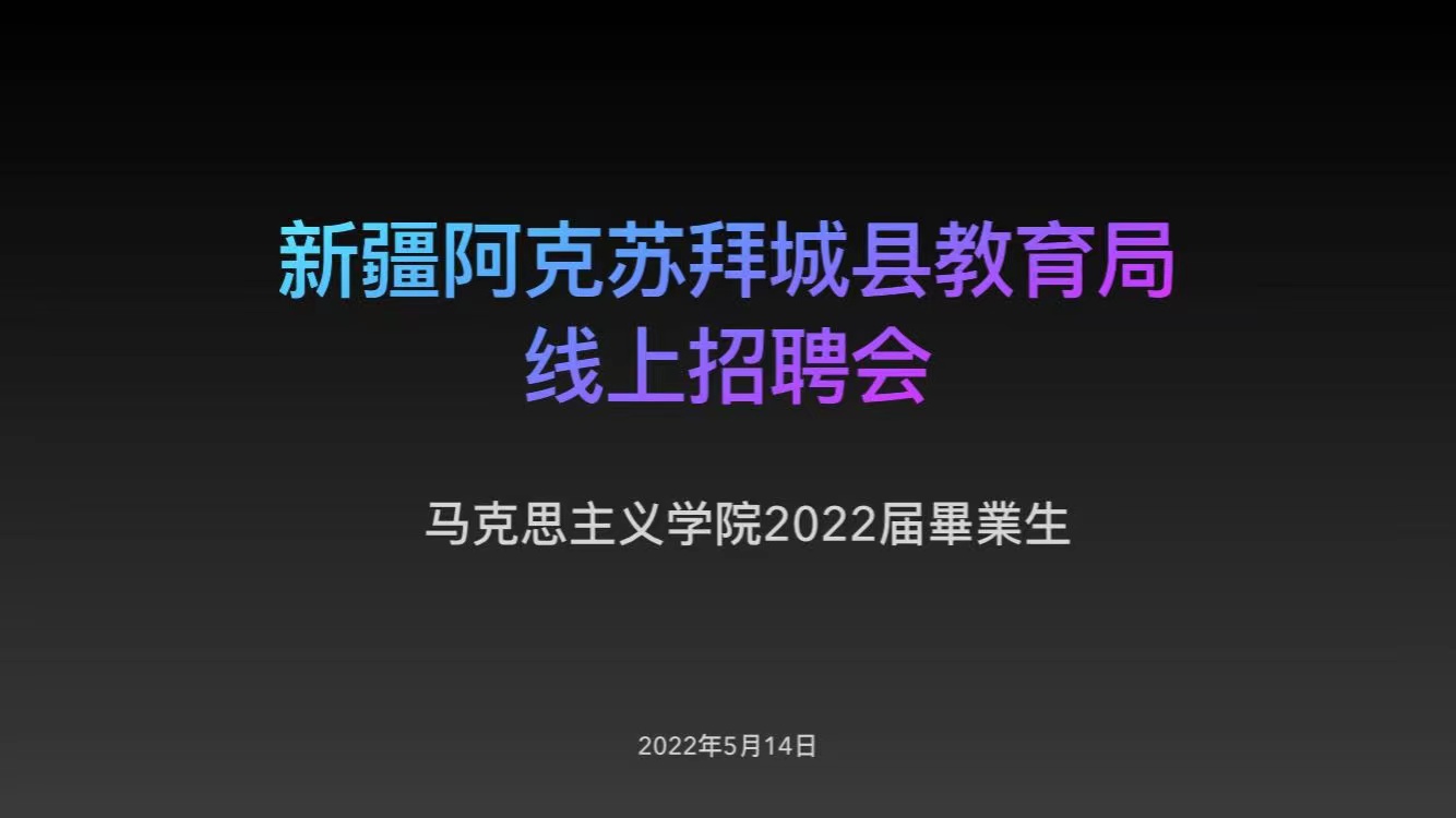 5月14日,米兰milan官网与新疆阿克苏拜城县教育局联合举办线上招聘会。学院党总支副书记刘琳、学工办主任张洪海、辅导员查娜及2022届全体毕业生参加了会议。会上,新疆阿克苏拜城县教育局白龙宇同志介绍了拜城县教育系统2022年招聘的政策及工作领域相关岗位工作特点与发展前景等。米兰官网毕业生冯佳蕊、王秀秀、胡日查和白龙宇在会上分享了就业方面的经验与心得,对毕业后如何更好地走上教师岗位、完善个人简历、获取就业信息、签订三方协议、薪资待遇、晋升空间等方面给予答疑解惑。