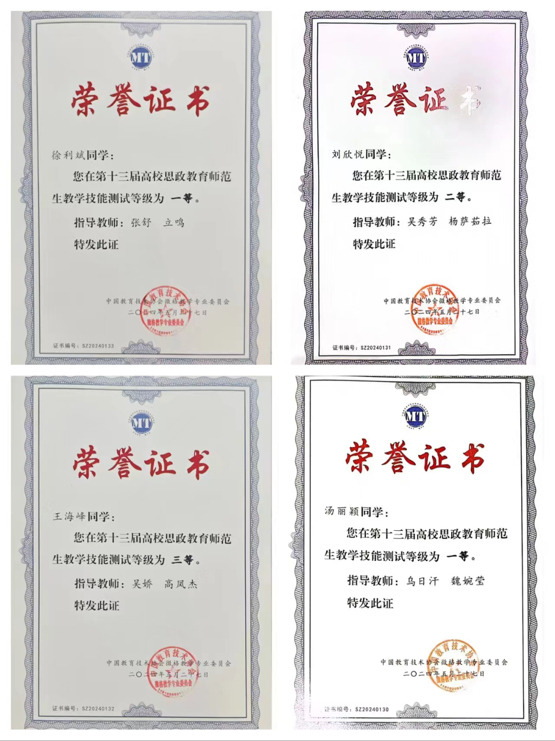 米兰官网学子在第十三届高校思政教育师范生教学技能测试与交流展示活动荣获佳绩