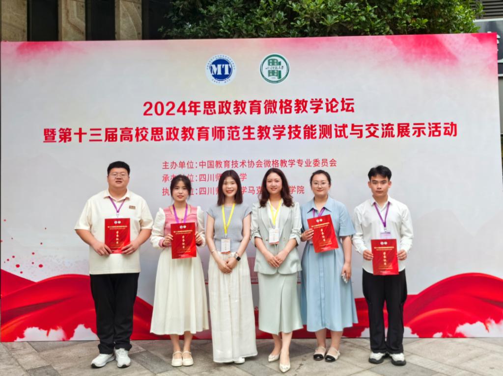 5月24日至27日,2024年思政教育微格教学论坛暨第十三届高校思政教育师范生教学技能测试与交流展示活动在四川成都顺利举行。此次展示活动由中国教育技术协会微格教学专业委员会主办,四川师范大学承办。西南大学、华中师范大学、陕西师范大学等全国近百所高校的547名选手参加了本届高校思政教育师范生教学技能测试与交流展示活动。米兰官网米兰milan官网由杨萨茹拉老师、立鸣老师带队,刘欣悦、汤丽颖、徐利斌、王海峰四名学生参加。